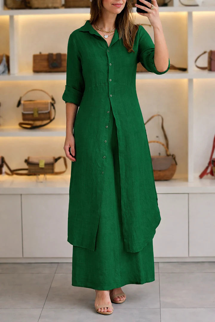 Accessories: Styled with gold statement necklace and gold sandals (optional)